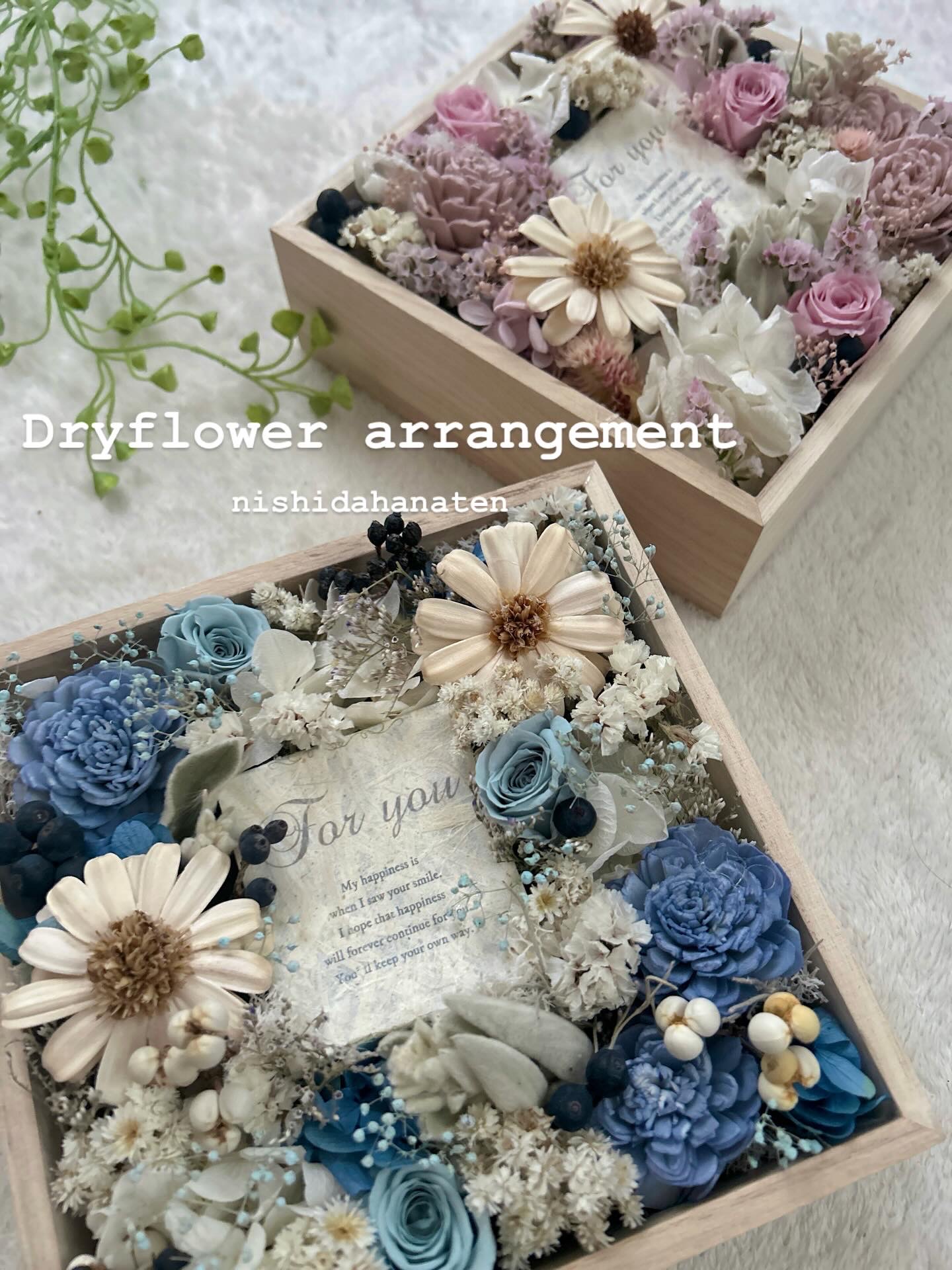 プリザーブドとドライのブーケ(ブルー)